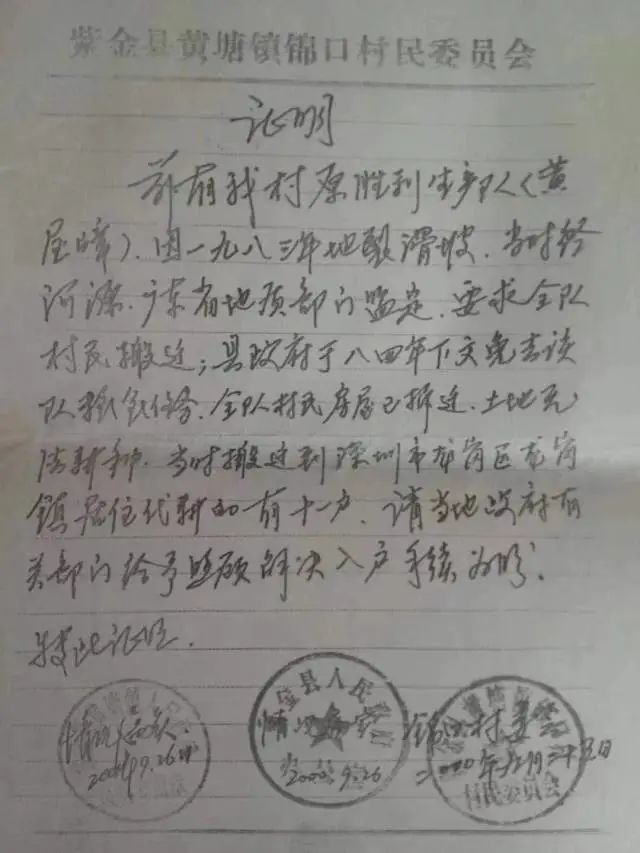解释:“兹有我大队到手坐褥队社员……黄佩坚等壹拾弍户伍拾玖东说念主,劳力叁拾伍东说念主,因地裂房屋倒塌,腹地无法耕作,现赶赴宝安县西乡公社鹤洲大队租耕地盘,请上司计议指引及当地附近部门予以批准安置为盼……一九八三年八月四日”